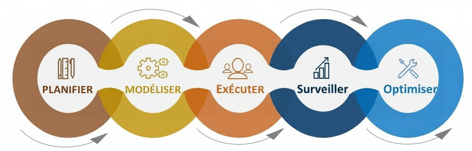 Bien que l’objectif principal du BPM soit d’améliorer l’efficacité et l’efficience des processus d’affaires, il ne s’agit pas d’appliquer une seule méthode ou approche. Le BPM représente plutôt un parcours organisationnel visant à :